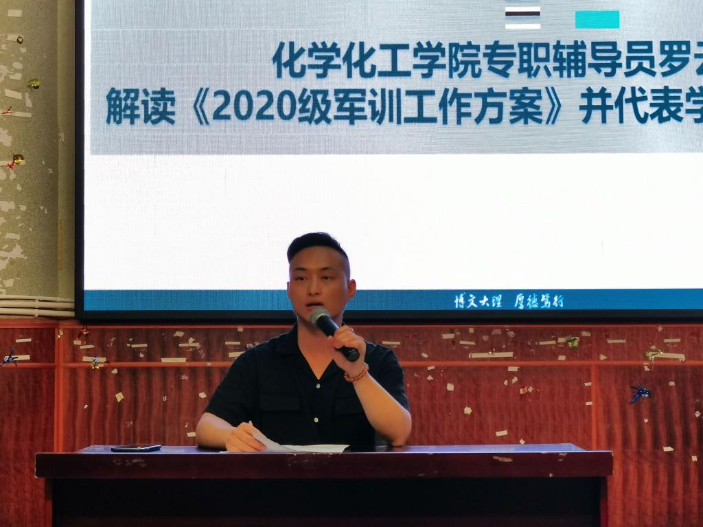 为保证2019级化工学子军训顺利举行,6月14日晚7点威廉希尔(WilliamHill)于南坝校区学术报告厅开展军训动员大会。思想政治辅导员罗云主持会议,2019级全体学生参加军训动员大会。