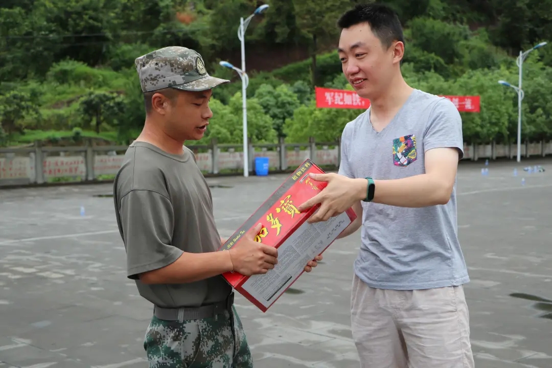 来到国防基地,驻训老师罗云与团部教师、教官热情迎接潘维副书记一行。参训学生集合列队,他们动作规范整齐,身姿挺拔。潘维副书记首先代表学院向同学们送来关心和祝愿,肯定了同学们前期的军训成果,并为教官送上凉茶以示感谢,还告诉同学们神舟十二号发射成功的喜讯,籍此鼓励同学们养成能吃苦、能奋斗、能奉献的精神。他说:“学院一直以来都非常关注同学们的军训情况,希望同学们能坚持训练,认真学习国防知识,懂得自己所肩负的责任,将军训养成的良好习惯带到后面的学习和工中”。随后他代表学院向同学们发放了西瓜、士力架等慰问品,鼓励同学们再接再厉,圆满完成此次军训任务。在军训学生代表的陪同下,潘维副书记一行参观了宿舍,检查内务成果,并对同学们作息时间是否习惯,伙食能否适应等问题表示了高度关注。当问到军训感受如何时,同学们表示很锻炼人,但一定会坚持下去的,并对学院的慰问表示由衷高兴。