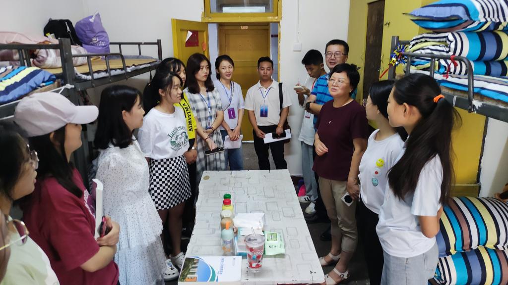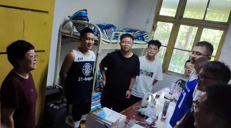 2021年9月9日下午六点,威廉希尔(WilliamHill)党总支书记朱朝菊、党总支副书记潘维,学工办副主任崔宝玉,思想政治辅导员罗云及李苹老师一同走访2021级新生寝室。