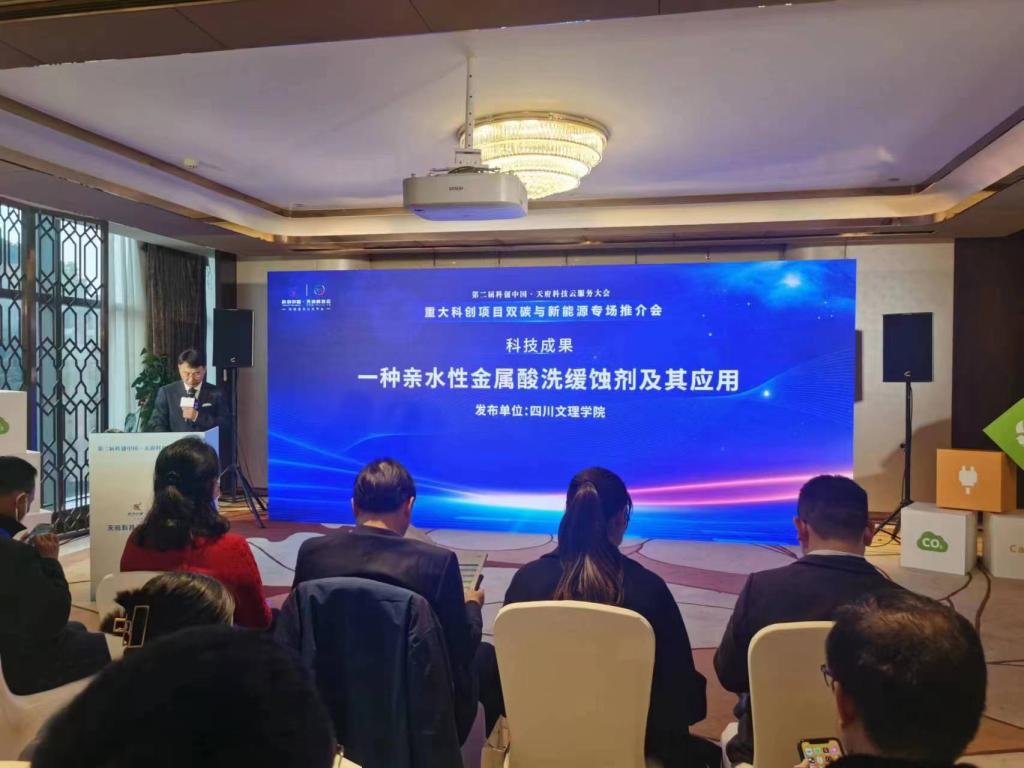 2月15日至16日,第二届“科创中国·天府科技云服务大会”在成都举行。由威廉希尔(WilliamHill)院长赖川教授研究团队自主研发完成的“一种亲水性金属酸洗缓蚀剂及其应用”成果入选此次大会重大科创项目双碳与新能源专场并进行现场推介。