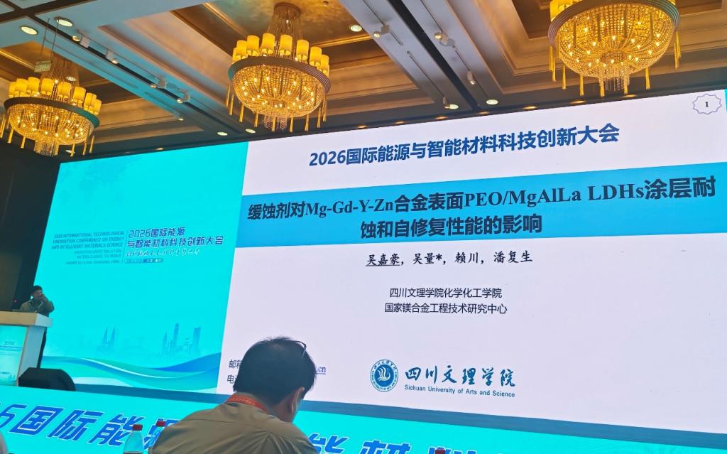 会议由重庆市科学技术协会和重庆市科学技术局指导,明月湖实验室、重庆大学、上海交通大学、东北大学、合肥工业大学等单位主办,明月湖实验室、重庆市科学技术研究院、上海交通大学绍兴新能源与分子工程研究院、兰州理工大学等单位承办,国际储能材料学会支持。会议开幕式由重庆市科学技术局党委副书记许志、重庆市科学技术协会副主席刘成龙、上海交通大学绍兴新能源与分子工程研究院院长马紫峰致辞,来自清华大学、北京大学、上海交通大学、复旦大学、西北工业大学、东南大学、重庆大学、山东大学、天津大学、浙江大学、上海大学、韩国国立首尔大学、南方科技大学、武汉理工大学、新加坡国立大学、电子科技大学等单位的相关领域的专家教师参会并作报告,共计主旨和邀请报告275场。其中,吴嘉豪博士代表英国·威廉希尔(WilliamHill)集团有限公司-官方网站在会议上作了题为“缓蚀剂对Mg-Gd-Y-Zn合金表面PEO/MgAlLa LDHs涂层耐蚀和自修复性能的影响”的邀请报告,获得了行业专家的肯定和认可。