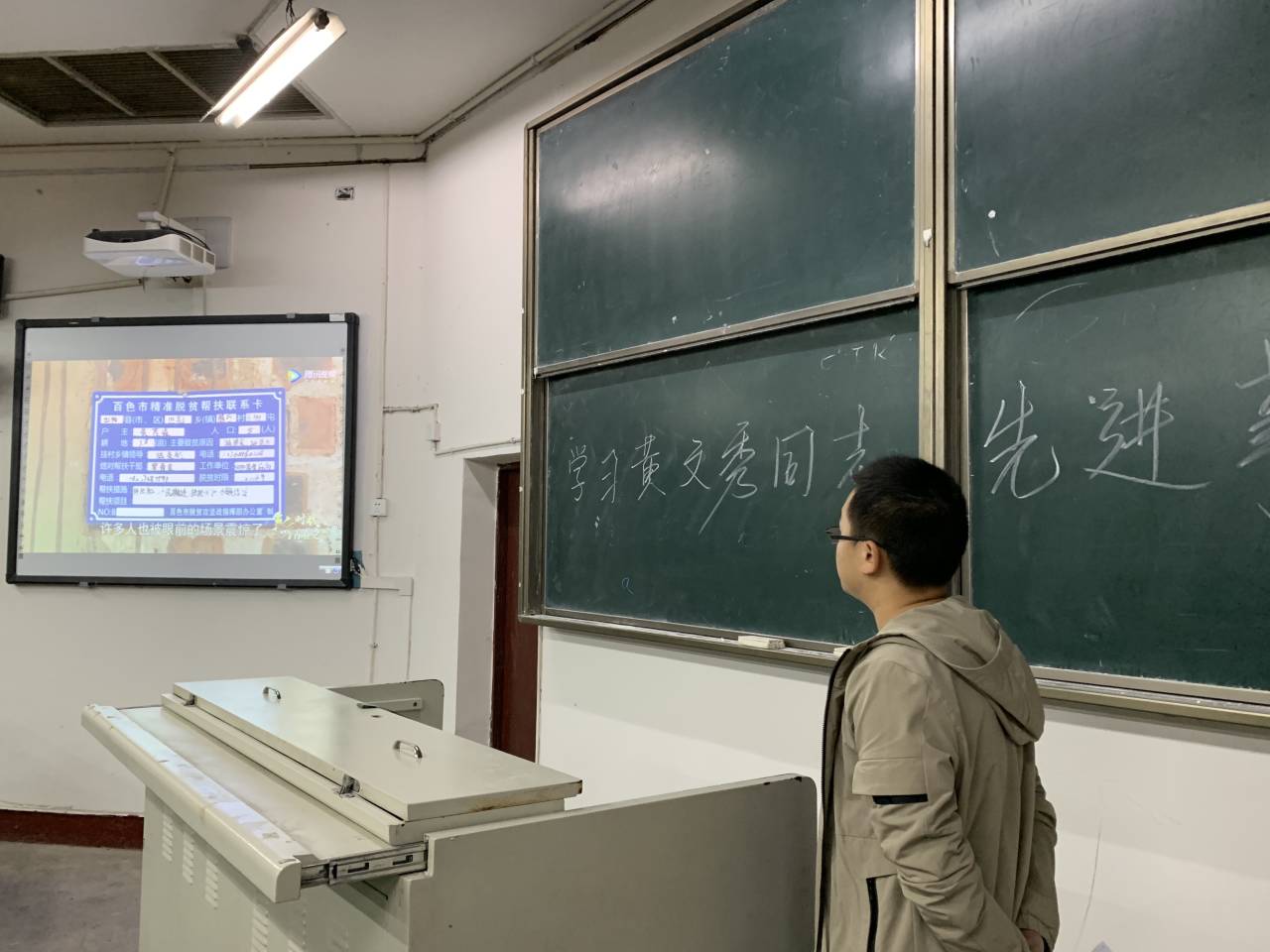 首先,各班辅导员对黄文秀同志的事迹进行了详细地介绍:黄文秀同志生前系广西壮族自治区百色市委宣传部副科长、派驻乐业县新化镇百坭村第一书记。她作为北京师范大学的一名法学硕士、2016届广西定向选调生,她原本可以选择去更好的地方进行发展,但是她毅然决然地选择回到生她养她的百色,成为百坭村的扶贫第一书记,也正是在这条扶贫的道路上,她遭遇了山洪,因公殉职,年仅30岁。她在扶贫日记中写道:“只有扎根于泥土,才能懂得人民。”她是从大山女儿到扶贫战士的时代楷模,是在脱贫攻坚伟大实践中涌现出来的先锋模范。随后,各班辅导员播放了时代楷模黄文秀同志的表彰视频。老师和同学们都认真观看了视频,并通过视频真正了解了黄文秀同志的相关事迹,她是这个时代的实干者,也是坚守初心的梦想家。
