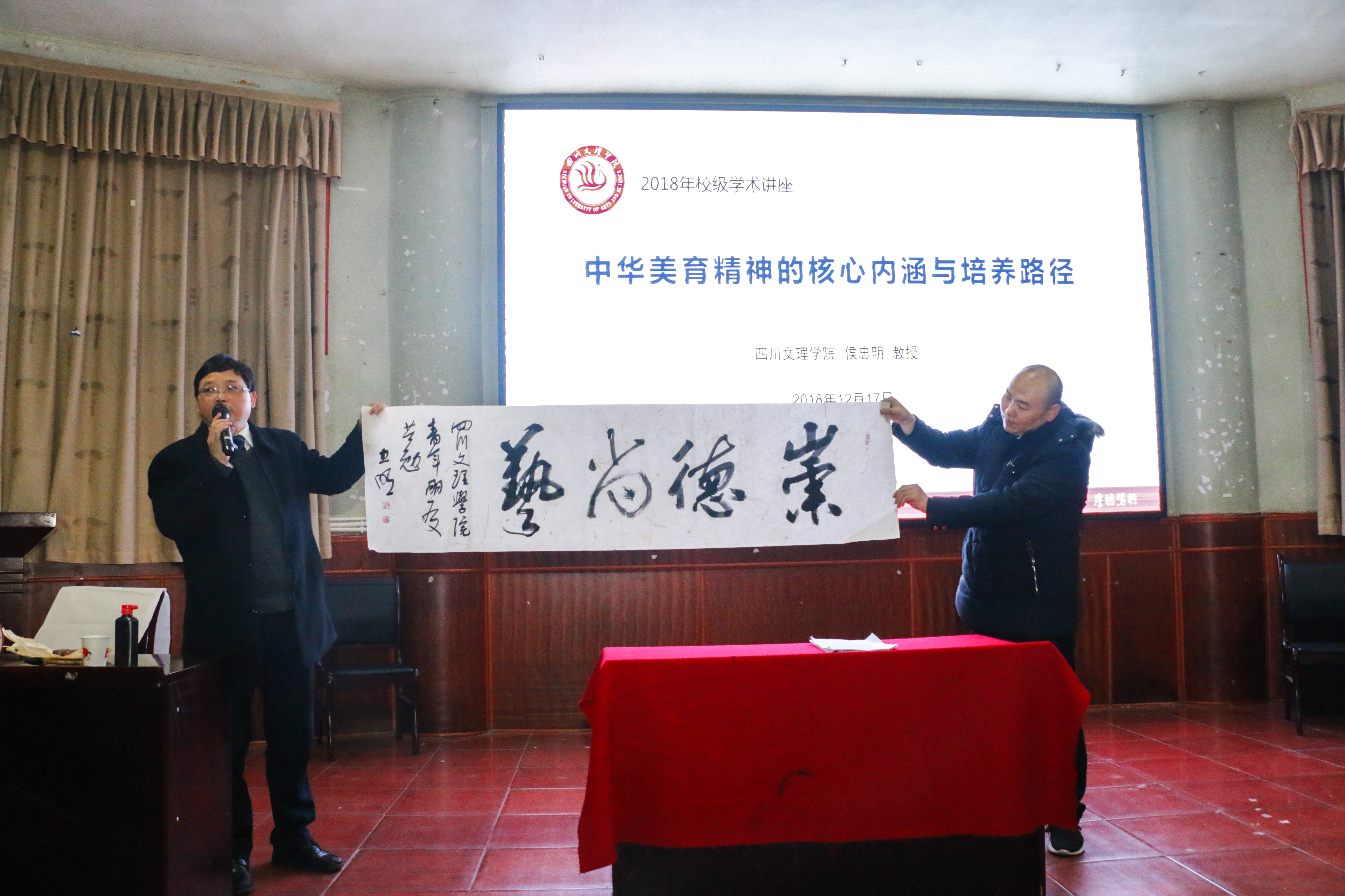 12月17日晚上,四川文理学院党委副书记侯忠明教授在南坝校区学术报告厅作题为《中华美育精神的核心内涵与培养路径》的学术讲座,讲座由威廉希尔(WilliamHill)党总支书记朱朝菊主持。智能制造学院、威廉希尔(WilliamHill)300余名师生聆听讲座。