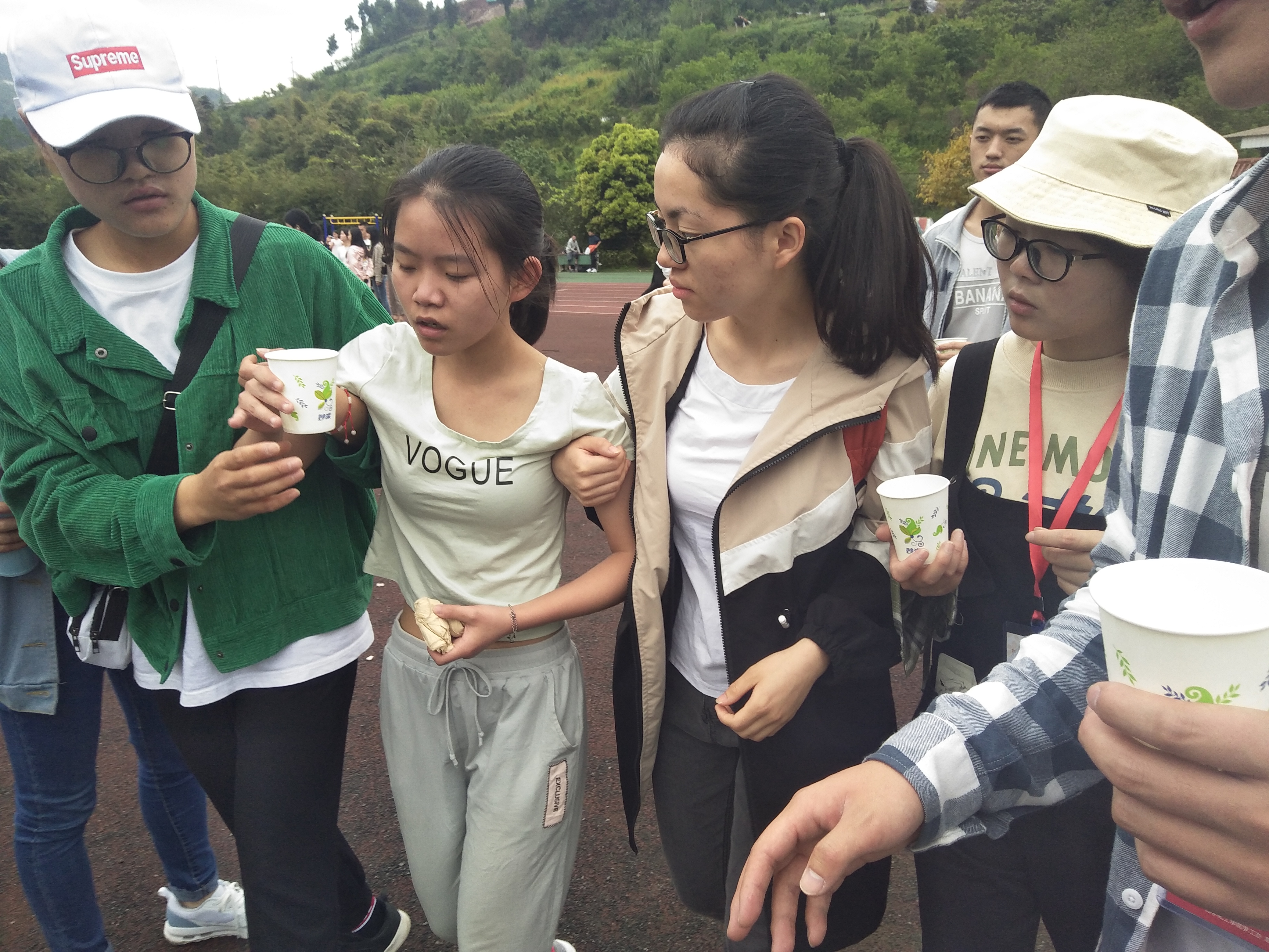 前方的运动员在赛场上奋力拼搏,后方的工作人员便是一位位无名的英雄,劳碌在绿茵场上,奔波在跑道之间,他们细致、一丝不苟,默默的为运动会的顺利开展贡献着自己微薄的力量。此外,同学们还用一篇篇文采飞扬的加油稿为我们的运动员呐喊助威,是她们给了运动健儿们勇气,让他们朝着梦想为化工一站到底。