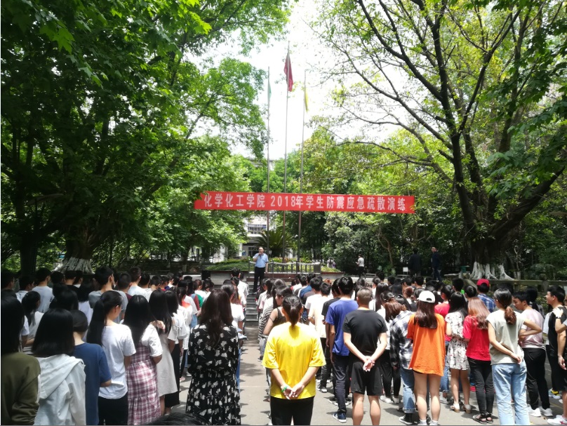 2018514日中午,威廉希尔(WilliamHill)于在南坝校区举行防震应急疏散演练。化工学院党总支书记朱朝菊、党总支副书记屈川、学工办主任兼团总支书记彭波到场指挥。学院主要学生干部和230余名2017级同学参加了此次活动。