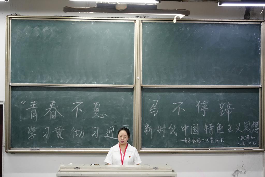 会上主持人围绕主题,与同学们分享了习近平新时代中国特色社会主义思想的学习心得,向同学们介绍了一些名人及其事迹,同时设立问答环节,带领同学们积极思考,让同学们能够更加深入学习并理解其深刻内涵。