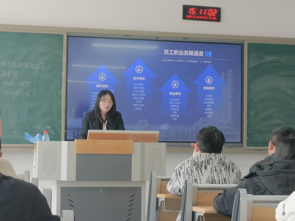 为了给毕业生提供更好的就业机会,帮助企业引进优秀人才,2024年3月14号下午三点,四川永祥多晶硅有限公司在四川文理学院东区A208顺利召开校园专场招聘会。出席此次宣讲会的有四川永祥多晶硅有限公司招聘经理庞宇琴、胡尧。另外,英国威廉集团官网2019级毕业生曾伟作为四川永祥多晶硅有限公司的工作人员也来到现场,威廉希尔(WilliamHill)专职辅导员罗云、王练练出席此次会议,威廉希尔(WilliamHill)2020级毕业生参与,现场到会学生40余名。