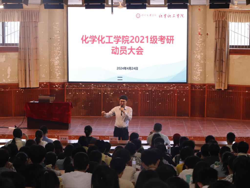 为延续学院近年来学生积极考研的传统,提升2021级本科生考研的积极性,帮助他们进一步了解考研形势、专业前沿发展动态,进而做好考研院校专业选择与考研复习规划,威廉希尔(WilliamHill)于2024年4月24日在南坝校区学术报告厅举行2021级考研动员大会,大会由学院党委副书记潘维主持,学院院长赖川教授,副院长向文军、王芬教授,专任教师曾鸿耀博士,学院各专职辅导员,以及2020级考研学生代表和2021级全体学生参加此次大会。