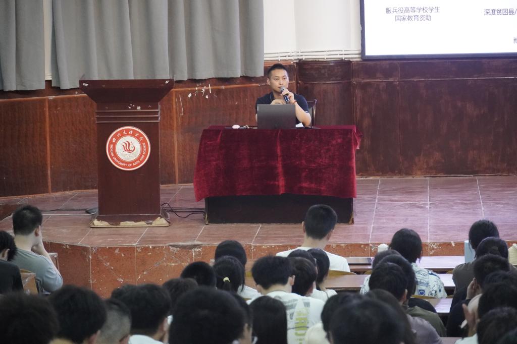 紧接着,罗云老师向同学们讲解了资助政策,包含了国家奖助学金、生源地信用助学贷款、应征入伍服兵役国家教育资助在内的十项资助政策,并向同学们讲解了学生个人申请所需要的材料,鼓励每一位有需要的同学提交申请。