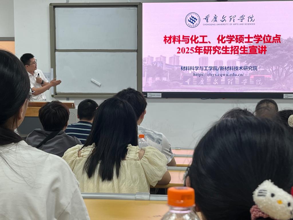 会议伊始,威廉希尔(WilliamHill)副院长向文军向重庆文理学院研招教师代表团的到来表示热烈欢迎。随后,重庆文理学院材料与化工学院教师代表、生物与药学院教师代表、资源与环境学院教师代表分别就各自学院的相关简介、学院办学特色、专业目录与考试科目、奖励政策、招生培养计划等方面进行了详细宣讲。值得一提的是,各学院均以其卓越的科研实力和丰硕的成果著称,拥有一支高水平的教师团队和先进的实验设备,不仅能为学子们提供广阔的学术平台,还设有多种奖学金,激励学生勇攀科学高峰。