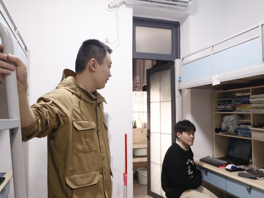 在走访过程中,老师们仔细查看了各学生寝室的卫生情况、物件整理以及用电的安全情况,对整洁干净的寝室给予了表扬,对存在问题的寝室提出了整改要求。潘维副书记针对寝室情况提出几点要求:一是要寝室地面和床铺要保持整洁,营造出良好的生活环境;二要学生要按时作息,杜绝没课期间卧床不起;三要注意用电安全,严禁使用违规电器;四要寝室内保持通风良好,营造一个健康舒适的寝室环境。