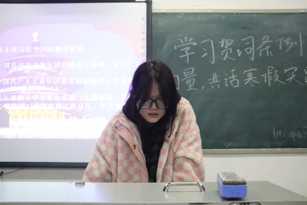最后,针对2025年寒假大学生社会实践(志愿服务)活动,多名参与实践的团员代表分享了自己的实践心得体会。他们结合各自的实践经历,讲述了在社区服务、环保公益等不同领域的所见所闻。在分享过程中,团员们纷纷表示,通过社会实践活动,不仅锻炼了自己的综合能力,增长了见识,还更加深入地了解了社会需求,明确了自己的责任和使命。