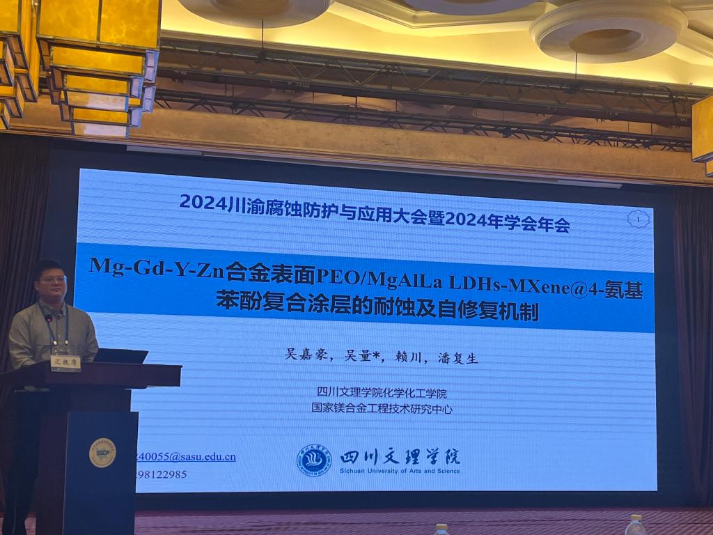 会议由四川省腐蚀与防护学会和重庆市腐蚀与防护学会主办,四川轻化工大学、中石油西南油气田分公司天然气研究院等8家单位联合承办。会议涉及腐蚀及控制技术的国内外最新进展、缓蚀剂、耐蚀材料、涂镀层、防锈技术、表面技术、电化学保护、工程防腐蚀、阴极保护、高温腐蚀与防护、海洋新材料及防护技术、医用材料腐蚀与防护、自然环境(大气/水/土壤)腐蚀、腐蚀防护相关技术标准化等方面内容,吸引了川渝地区120余名腐蚀防护领域的行业专家、高校师生、企事业单位领导及代表出席了会议,共计学术报告42场。其中,吴嘉豪博士代表英国·威廉希尔(WilliamHill)集团有限公司-官方网站在会议上做了题为“Mg-Gd-Y-Zn合金表面PEO/MgAlLa LDHs-MXene@4-氨基苯酚复合涂层的耐蚀及自修复机制”的报告,为高强高韧镁合金易腐蚀和表面涂层损坏而加速腐蚀的问题,提出了一种创新的解决方案,获得了与会同行的高度评价。吴嘉豪博士通过参与此次会议,对腐蚀与防护的前沿动态有了更深入的理解,并与来自其他高校和企业的专家学者进行了广泛交流,为吴博士的个人专业发展提供了重要的信息资源和思维启发,同时也将为威廉希尔(WilliamHill)功能材料专业的教育教学改革与创新发展,以及高素质应用型复合型人才的培养,提供有力的参考和支持。