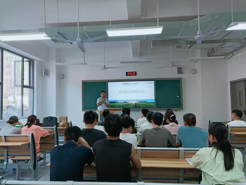 会议伊始,福华通达化学股份公司人力资源部部长肖茂强通过视频展示、PPT讲解、面对面交流等方式向同学们介绍公司概况、就业前景、岗位介绍、福利待遇等。毕业生们积极与企业人员互动,询问普遍较为关心的个人发展、实习安排等相关事宜,两位宣讲人针对问题进行一一解答,并给毕业生们提出宝贵意见。
